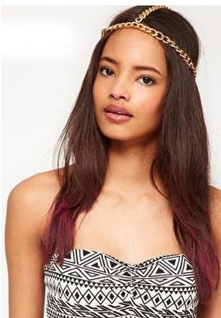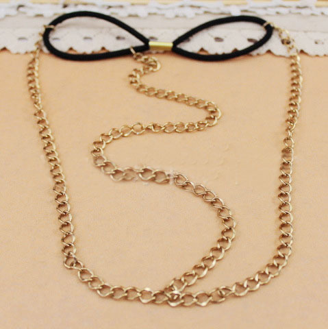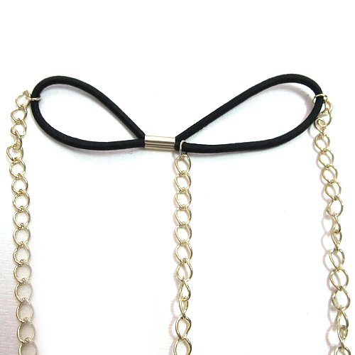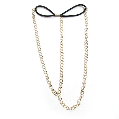 Gold head band with crosshatch finish and elastic band on the back for a comfortable fit.